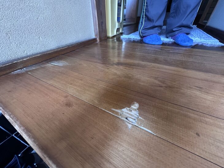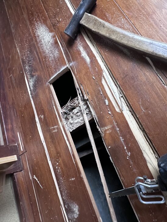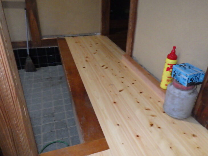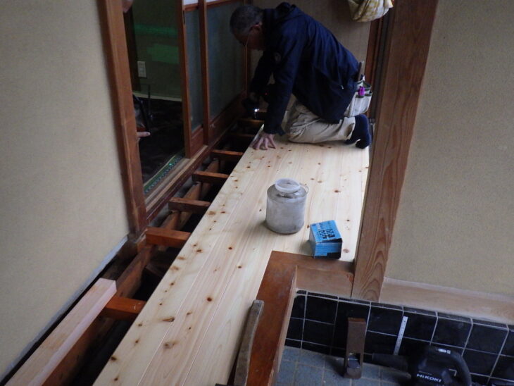 修繕部は再度、防蟻材を塗布したうえで、きれいな桧の無垢床で仕上げました。