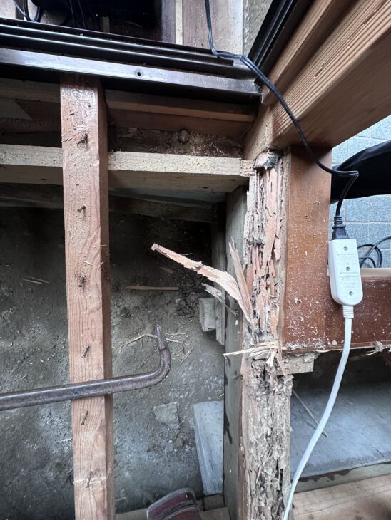 雨に濡れた靴、結露、外気との温度差など、家の中で最も湿気がたまりやすい条件が整っており、木材が湿気を持ちやすい環境でもあります。今回も床を解体してみるまで被害の全容は分かりませんでしたが、いざ開けてみると少し驚きの光景が広がっていました。