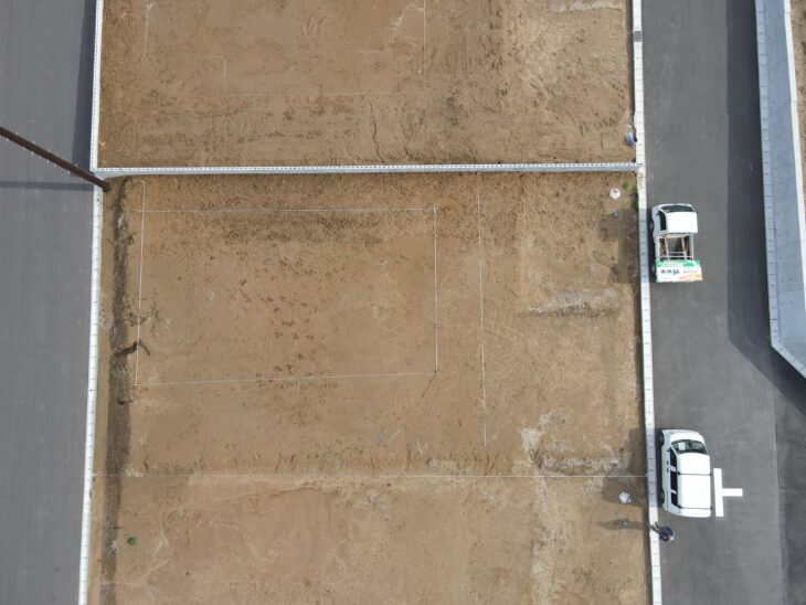地縄を張ると、建物の大きさや位置関係が一気に具体的になり、隣地との距離、道路との関係、日当たりの方向など、図面では分かっていたはずのことが、現場で改めて確認できます。