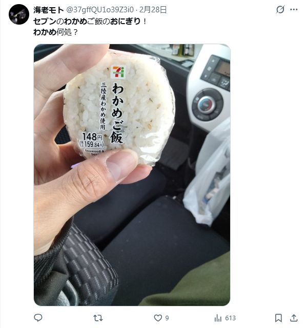 少し前に話題になっていたコンビニのわかめおにぎり。