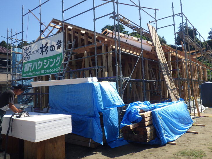 成田市猿山で進行中の注文住宅「杉の家」外断熱Ecoライフ工法 平屋。