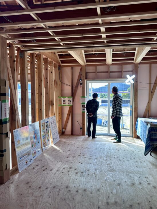 このタイミングでしか見られない家の構造をじっくり見たい、と足を運んでくださる方ばかりで、皆さんの家づくりに対する真剣さが伝わってきます。
