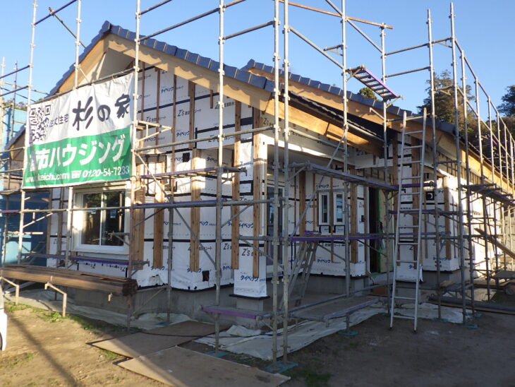 注文住宅「杉の家」外断熱ECOライフ工法、平屋32坪の住まいも、内装工事が進み、家のカタチがはっきりと見えてくる工程に入りました。