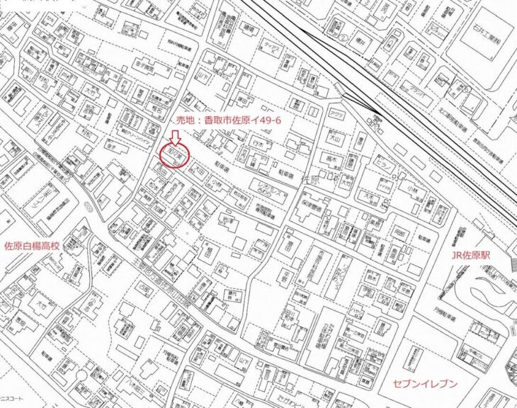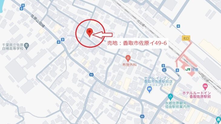 佐原駅前、徒歩5分の売地。佐原小中学区内の旧市街地では数少ない駅前の立地。学校、病院、コンビニ、観光など生活が全て徒歩圏内。しかも角地!