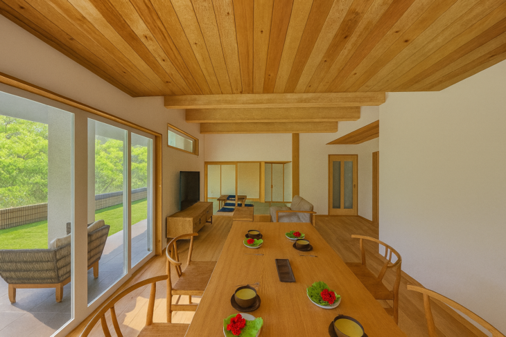 天然木の香りに包まれるひとときや、勾配天井の広がりの中で深呼吸する気持ちよさ、家事が軽やかになる動線。