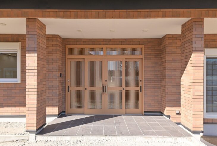 タイルの外壁と4枚建ての引き戸で高級感ある外観に