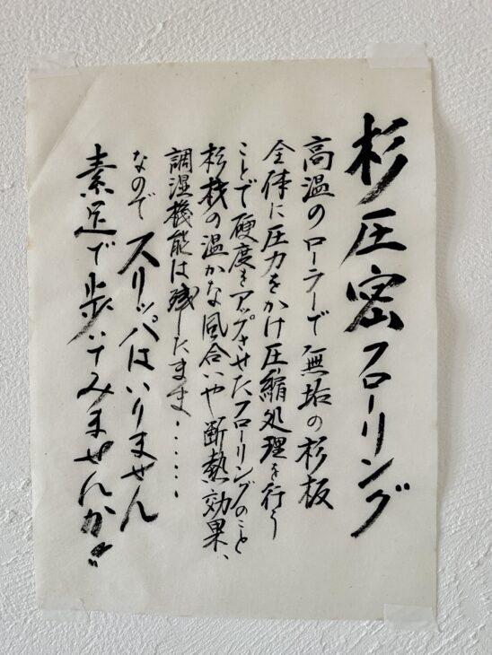 杉を高温ローラーでぎゅっと凝縮することで、素材がしまって性能が上がるそうです。
