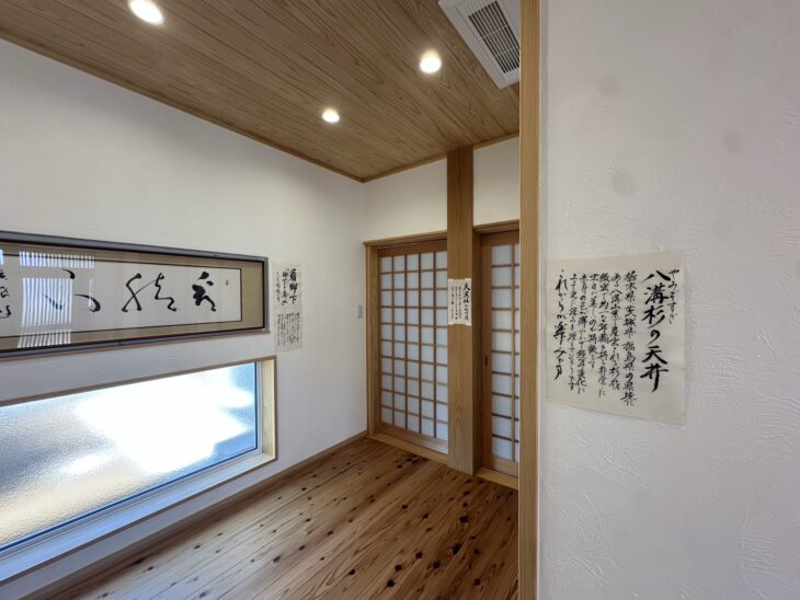 今回、性能やこだわりについて桶市さんから学んだことを、たくさん書にしたためました。家の随所に貼って、来客にも楽しんでいただいています。