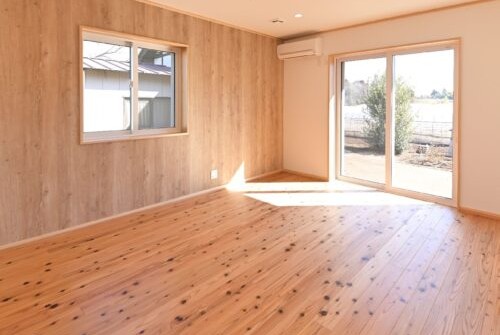 リビングと寝室の床は杉板の圧密(あつみつ)フローリングにしてもらいました。