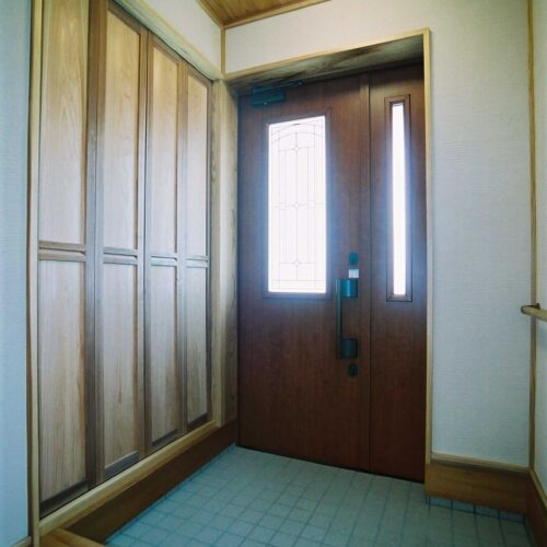 杉の注文建具に一枚物のサワラ檜の床板と羽目板をあわせた杉と檜のコラボ「杉の家」